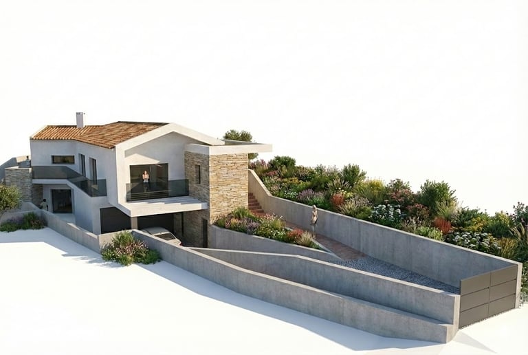Estas habitações de arquitetura contemporânea, nas tipologias V3 e V4, oferecem 330 m² de área bruta e uma excelente exposição solar sul/nascente. A distribuição funcional por três pisos inclui, no piso térreo, uma cozinha totalmente equipada Bosch em open-space com a sala de estar e jantar, além de um quarto, casa de banho e acesso direto ao jardim. No último piso encontra-se a zona privada, onde todas as suítes e quartos dispõem de roupeiros embutidos e varandas com vista para a natureza, a cidade e o Santuário. O piso inferior é reservado à garagem para três viaturas, lavandaria e área técnica.